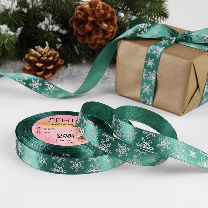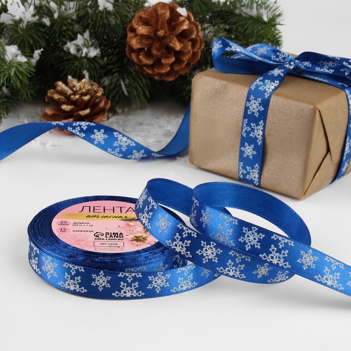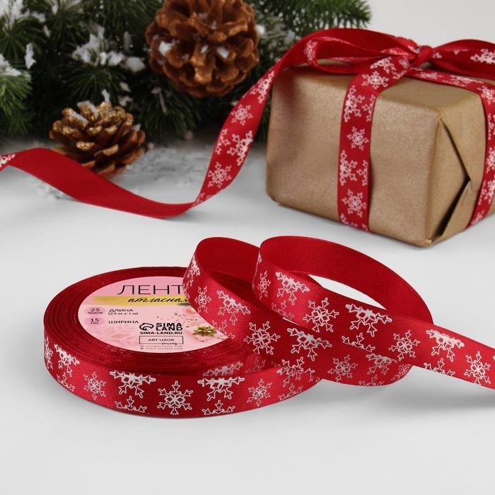 Атласная лента новогодняя, ширина 15 мм, длина 23 метра