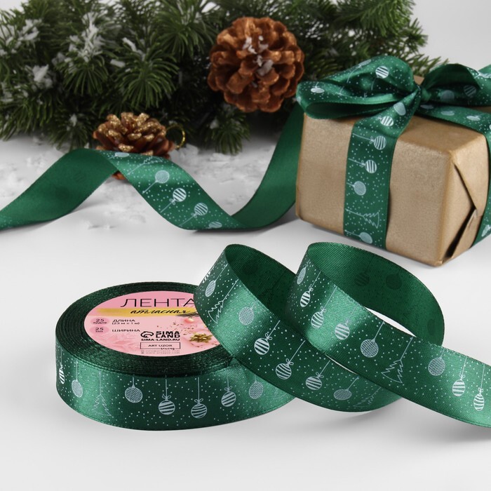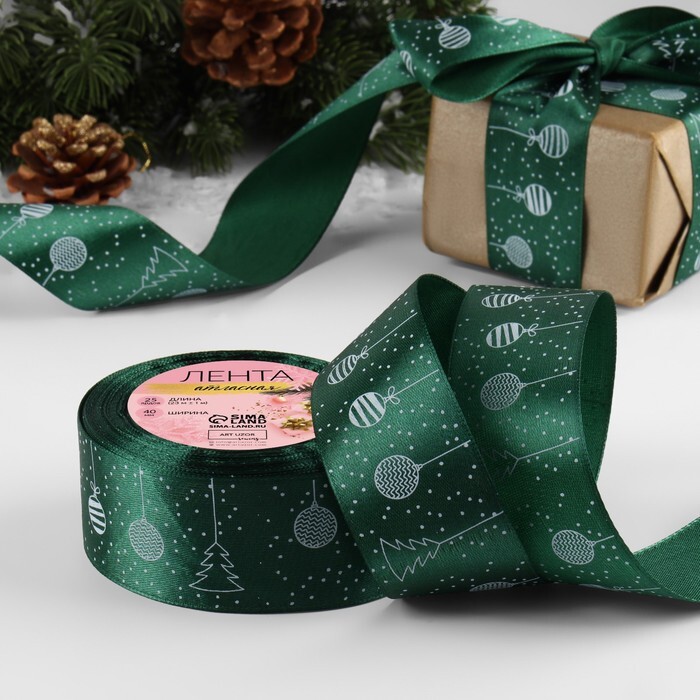 Атласная лента новогодняя, ширина 25 и 40 мм, длина 23 метра