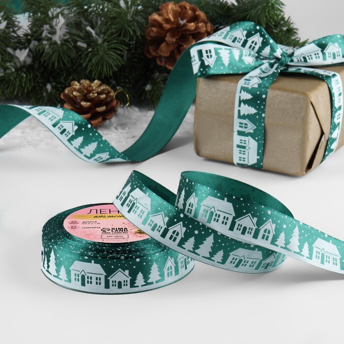 Атласная лента новогодняя, ширина 25 мм, длина 23 метра