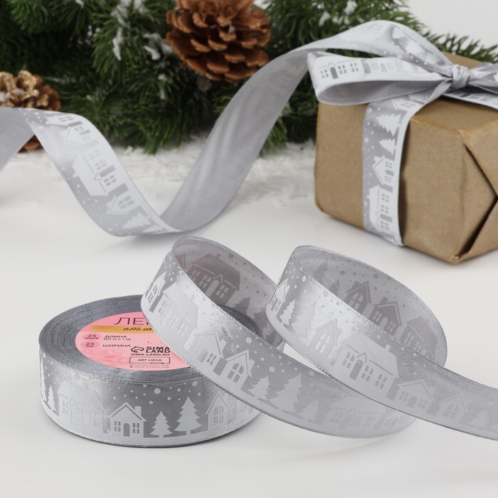Атласная лента новогодняя 25 мм