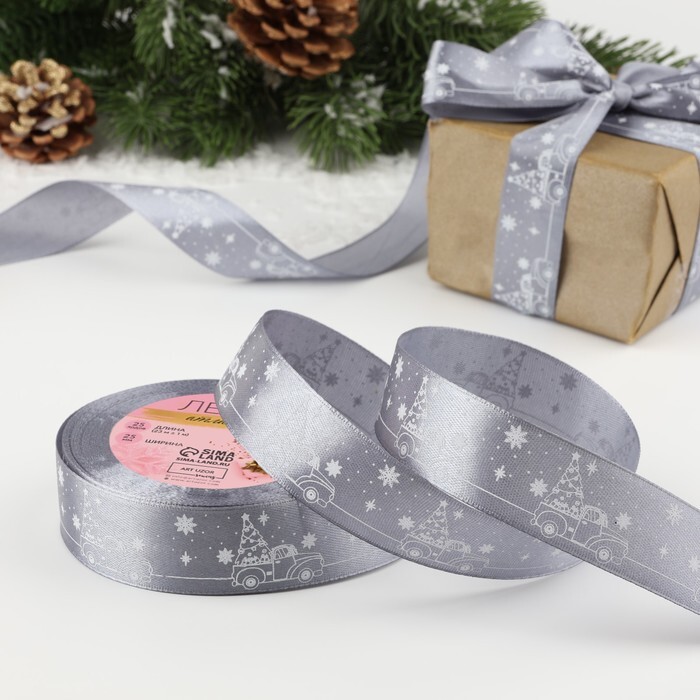 Атласная лента новогодняя 25 мм