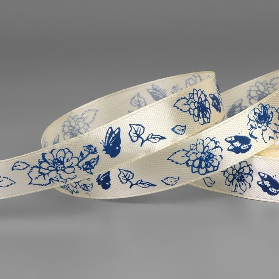 Атласная лента в цветочек 15 мм