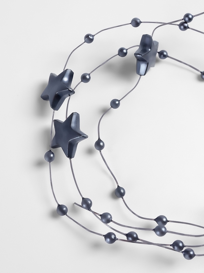 Стильное украшение для современного интерьера! Серая гирлянда от Арт Узор — необычное решение для декора помещений. Чередование звёзд и бусин разного размера создаёт эффект глубины и движения.