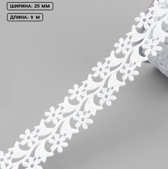Изысканная фигурная лента с шириной 25 мм и длиной 9 метров, добавит утончённости и стильности вашим проектам. Эта элегантная декоративная лента из полиэстера станет отличным решением для украшения интерьера, оформления подарков или творчества, подчеркивая изысканные узоры. Используйте её для наделения ваших изделий индивидуальностью и шармом.