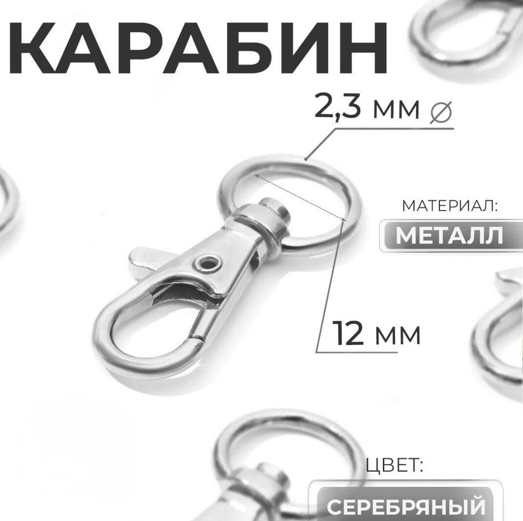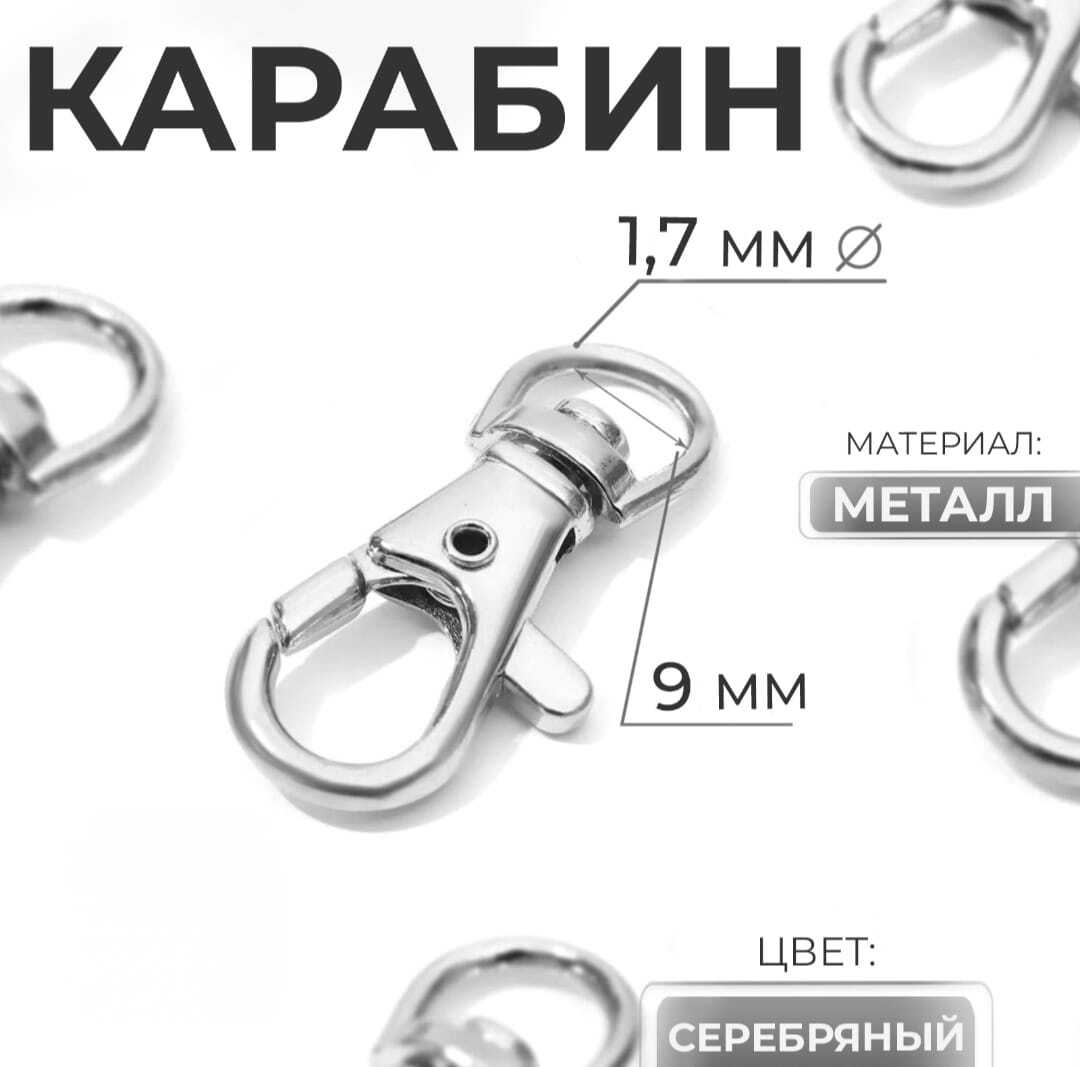 Карабин для сумки металлический, толщина кольца 1,7 мм