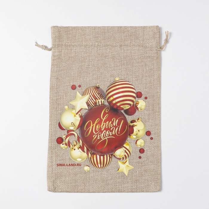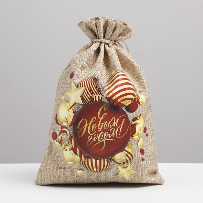 Мешочек подарочный новогодний с термонаклейкой холщовый, размер 20х30 см (в завязанном виде 20х26 см) рисунок только с одно стороны.