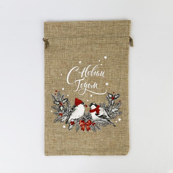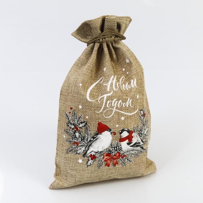 Мешочек подарочный новогодний с термонаклейкой холщовый, размер 20х30 см (в завязанном виде 20х26 см) рисунок только с одно стороны.