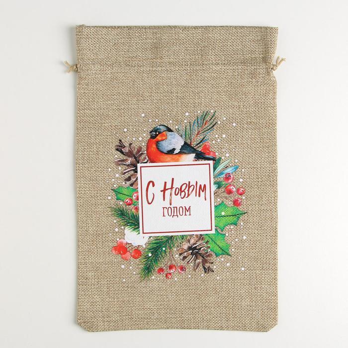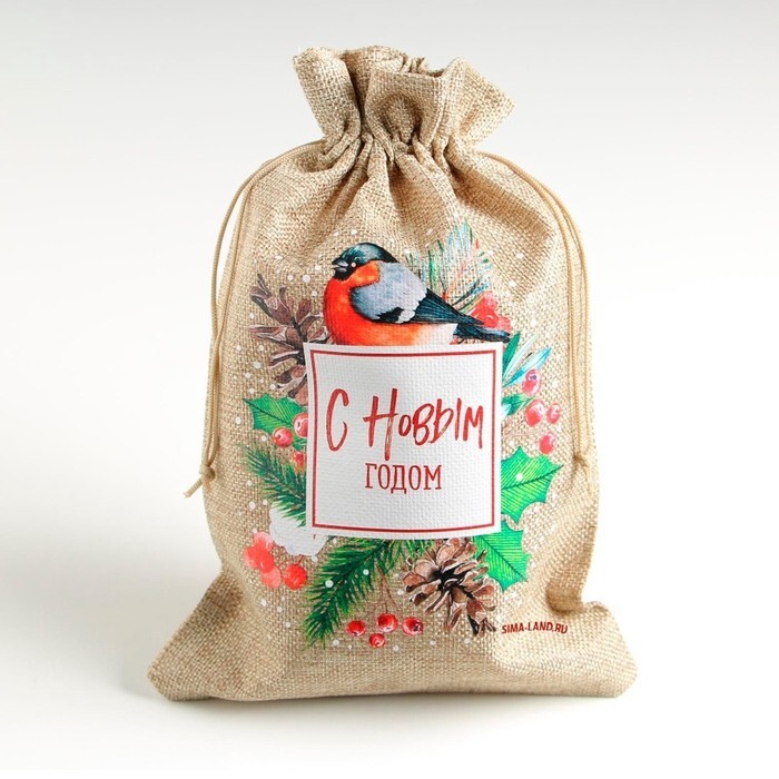 Мешочек подарочный новогодний с термонаклейкой холщовый, размер 20х30 см (в завязанном виде 20х26 см) рисунок только с одно стороны.