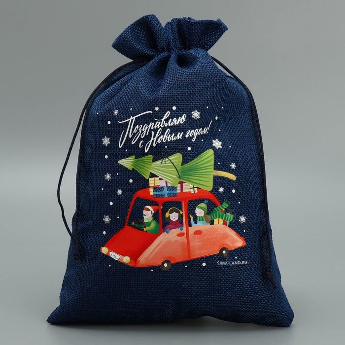 Мешочек подарочный новогодний с термонаклейкой холщовый, размер 20х30 см (в завязанном виде 20х26 см) рисунок только с одно стороны.