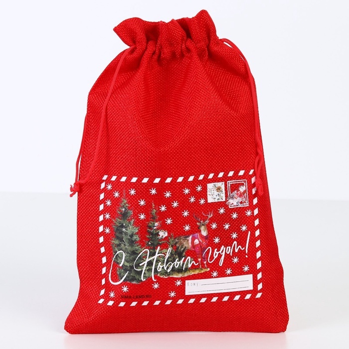 Мешочек подарочный новогодний с термонаклейкой холщовый, размер 20х30 см (в завязанном виде 20х26 см) рисунок только с одно стороны.