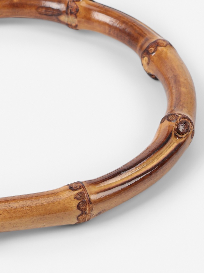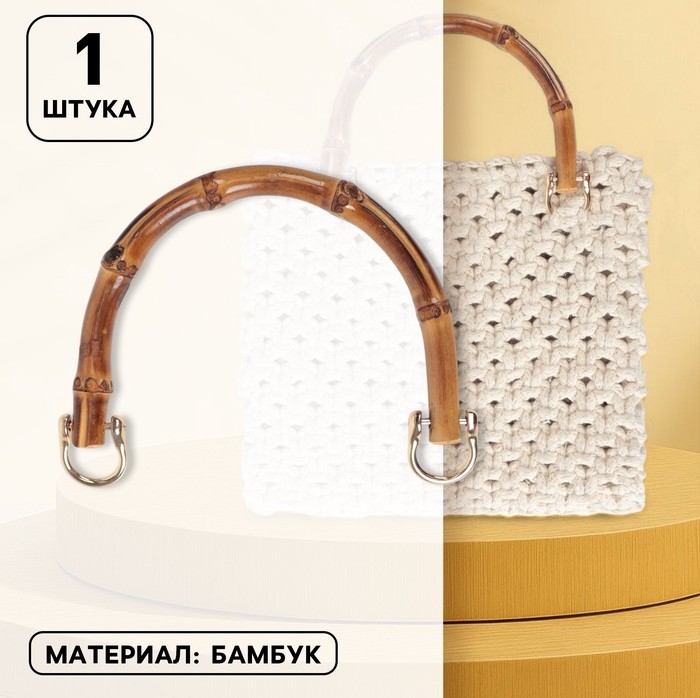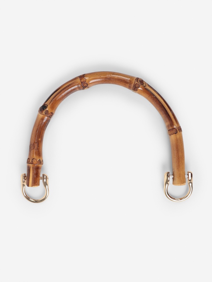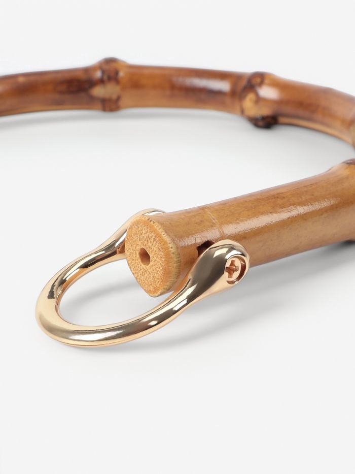 Эта ручка для сумки из бамбука с полукольцами — стильное решение для обновления вашего аксессуара. Размер 13,5×10,5 см позволяет использовать ее с различными моделями. Бежевый цвет натурального бамбука в сочетании с золотой фурнитурой создает элегантный и современный образ.