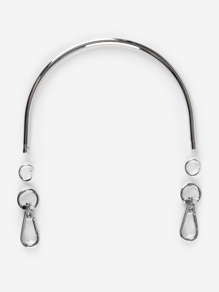 Ручка с карабинами — практичная металлическая фурнитура в серебристом цвете для стильных сумок. Её форма повторяет изгиб рукоятки, которая удобно ложится в ладонь, а карабины обеспечивают надёжное крепление. Это готовое решение для обновления старой модели или создания нового аксессуара своими руками. Серебристый оттенок легко сочетается с разными тканями и кожзамом.
