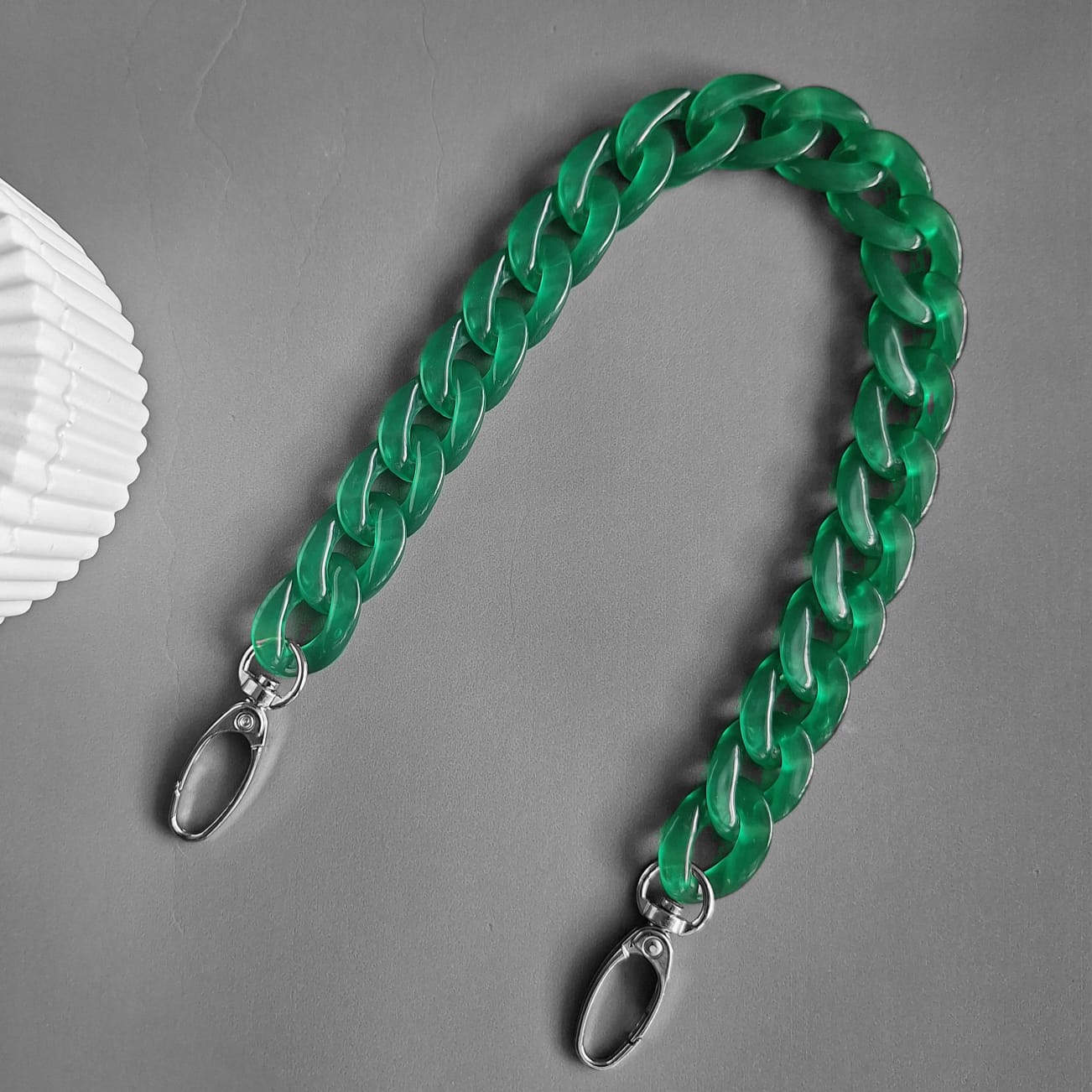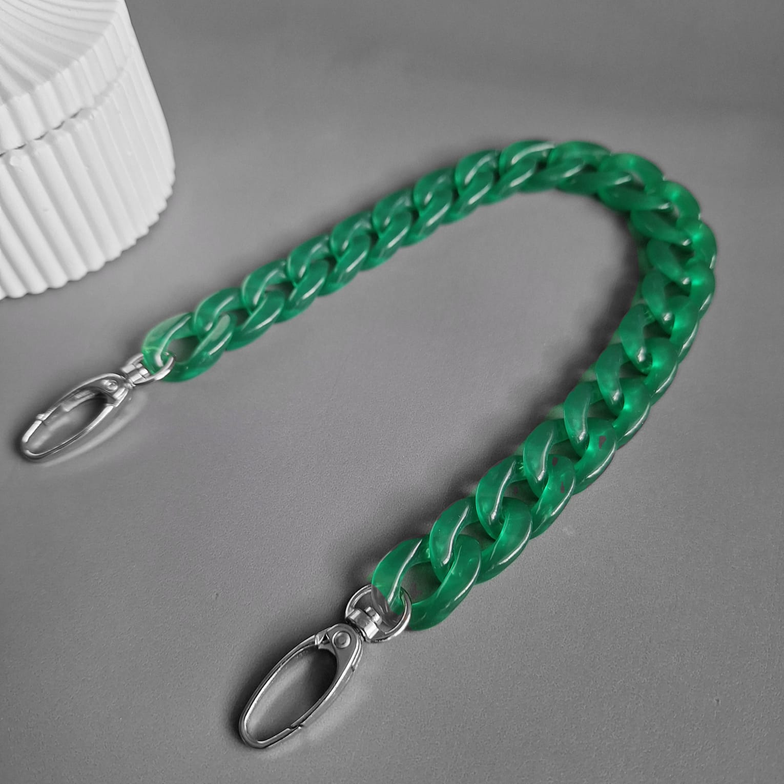 Ручка-цепочка для сумки  длина с учетом карабинов 30 см, ширина 23 мм. Цвет карабинов серебро. Материал цепочки акрил, карабинов металл.