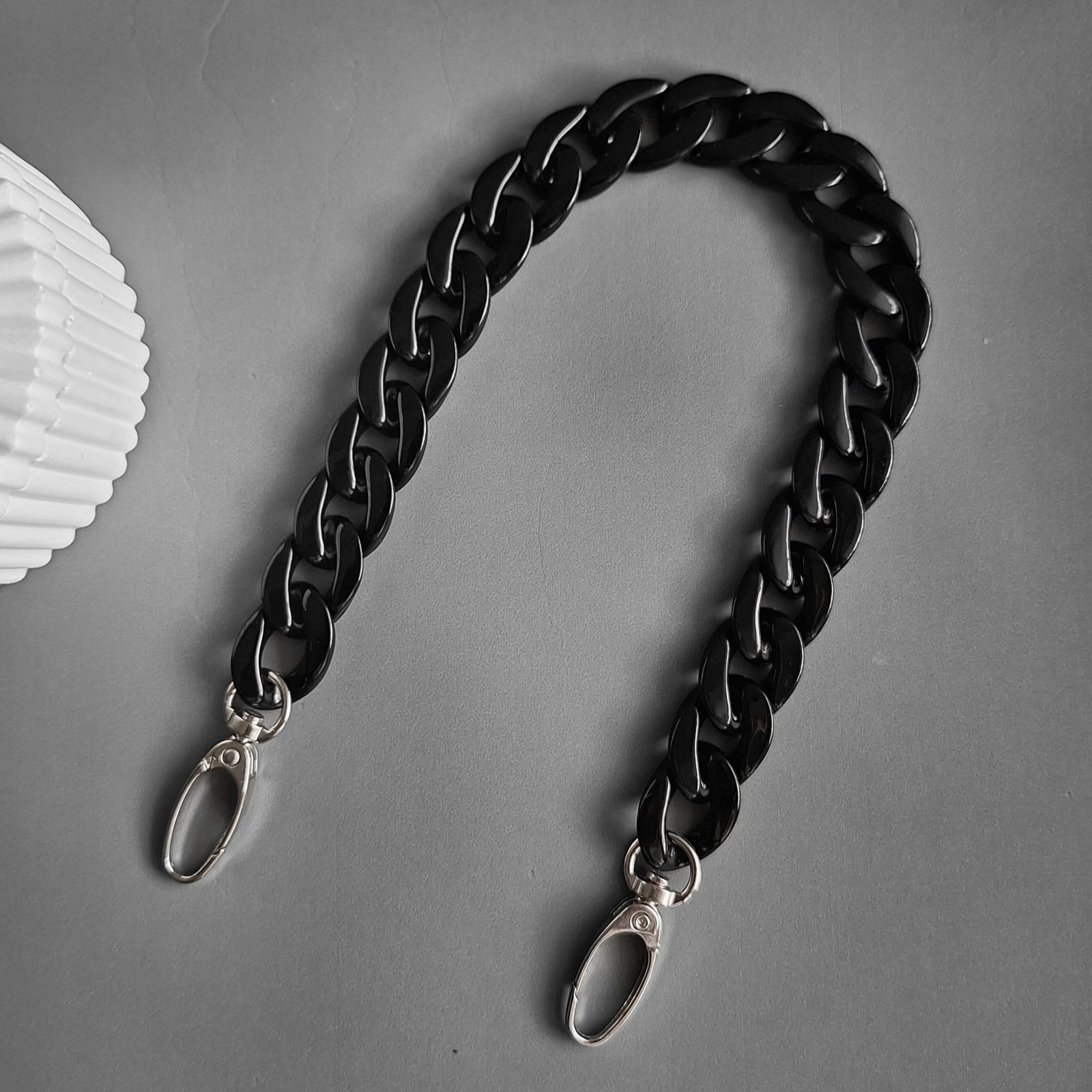 Ручка-цепочка для сумки  длина с учетом карабинов 30 см, ширина 23 мм. Цвет карабинов серебро. Материал цепочки акрил, карабинов металл.