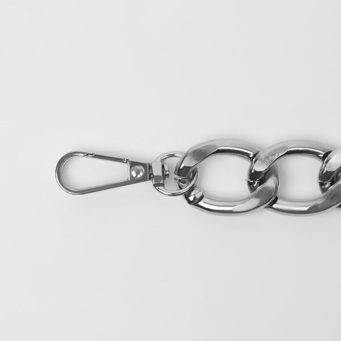 Ручка-цепочка для сумки  длина с учетом карабинов 30 см, ширина 19 мм. Цвет  серебро. Материал цепочки металл.