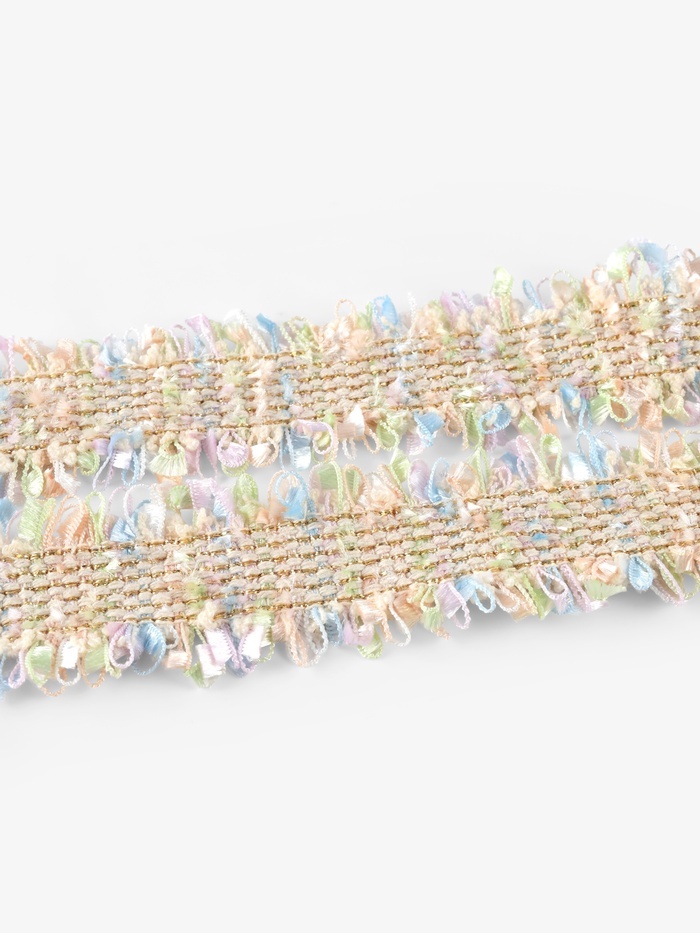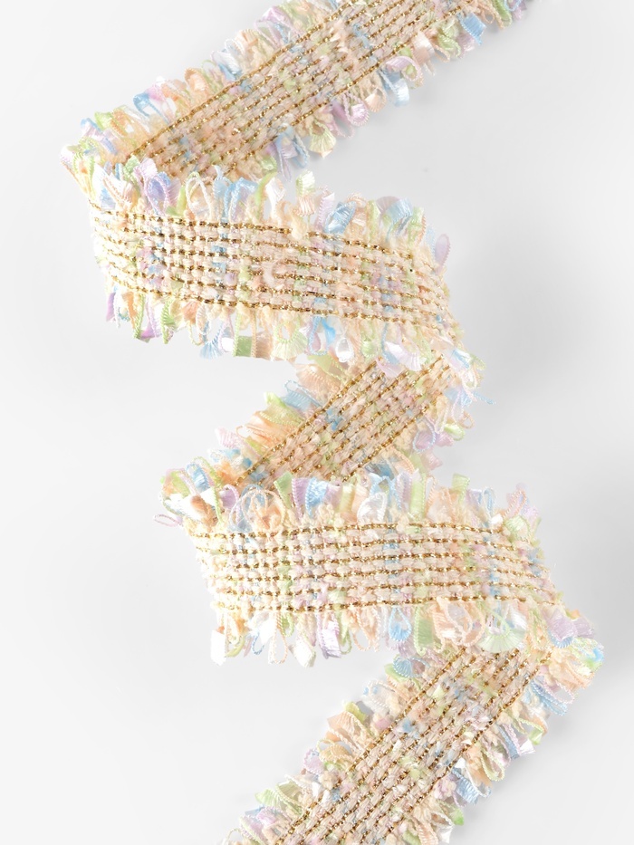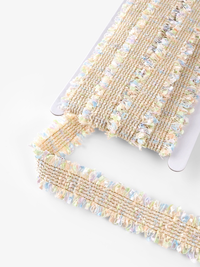 Твидовая тесьма — универсальный декор для создания уютного стиля. Её натуральный оттенок и двусторонняя фактура подходят для оформления одежды и домашнего текстиля. Широкая 30-миллиметровая полоса делает отделку выразительной.