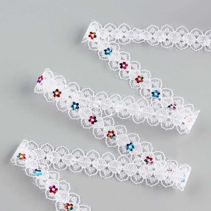 Тесьма гипюровая белая с пайетками ширина 15 мм, длина 25 метров