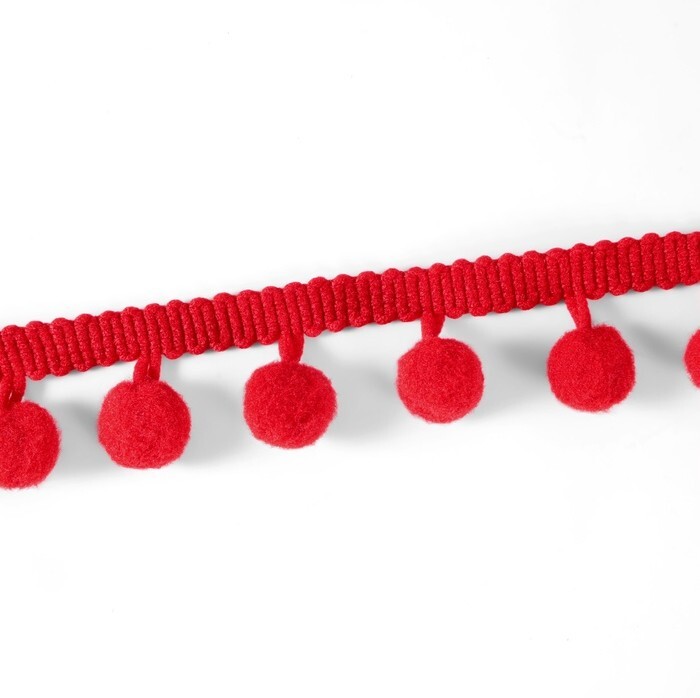 Тесьма с помпонами, ширина тесьмы 25 мм, размер помпона - D 10 мм, упаковка 8 метров